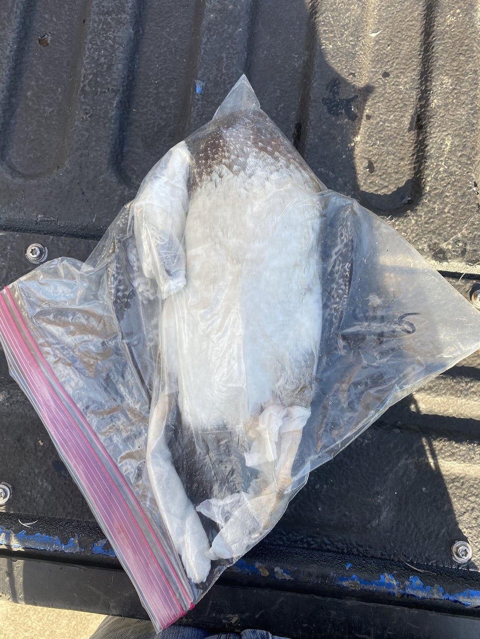 5. Place the bird breast first into a Ziploc bag that is large enough to not kink any feathers especially the wing tips or tail feathers. Do your best to get as much excess air out of the bag as possible (without compressing feathers, DO NOT USE A VACUUM SEALER). Double bagging is always a great idea if possible.